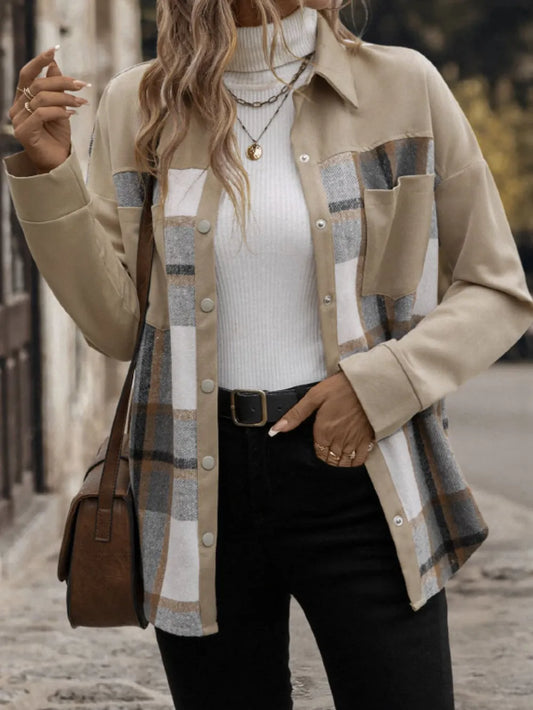 Perfee Plaid Snap Down Long Sleeve Shacket
